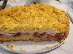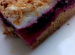 Ciasto posmaruj dżemem, następnie wyłóż pianę z białek, a na wierzch zetrzyj mniejszą część ciasta z lodówki.