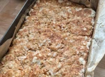Formę wysmaruj masłem i zetrzyj na tarce jedną część ciasta. Ugnieć palcami, aby ciasto pokryło całą powierzchnię blachy. Podpiecz w piekarniku nagrzanym do 180 stopni przez ok. 10 minut.