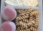Twaróg rozdrabniamy widelcem w miseczce z łyżką ksylitolu i mlekiem. Winogrono myjemy. Wszystkie składniki układamy w pojemniku.
