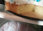 Ciepłe ciasto wyjąć z formy i pozostawić na kratce do ostudzenia. Przekroić wzdłuż na dwie lub trzy części (najlepiej tnie się szpagatem) i przełożyć wcześniej przygotowanym kremem.
