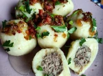 Cebulę pokrój w drobną kostkę, podsmaż na oleju do lekkiego zrumienienia ( ⅔ cebuli dodaj do farszu, ⅓ zostaw do okrasy pyz). Mięso rosołowe wraz z cebulą przepuść przez maszynkę do mielenia.