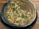 MAKARON: Mąki przesiewamy do miski, dodajemy jajka, trochę oliwy, sól i odrobinę gorącej wody. Wyrabiamy giętkie i elastyczne ciasto (w razie potrzeby dodajemy więcej wody). Dzielimy na kilka części, aby było nam wygodnie wałkować. Każdy kawałek ciasta, posypujemy obficie mąką i rozwałkowujemy bardzo cienko. Płaty ciasta kroimy na pasy o szerokości ok. 5 cm, układamy jeden na drugim i kroimy w cienkie paseczki. Gotujemy w osolonej wodzie przez ok. 5-6 minut od czasu wypłynięcia.