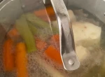 ROSÓŁ: Wodę wlewamy do garnka, mięso myjemy, warzywa obieramy i myjemy. Wkładamy do garnka mięso, warzywa w całości (nie kroimy w kostkę) i przyprawy. „Gotujemy” na wolnym ogniu 3,5-4 godzin. Rosół nie może wrzeć! musi „pyrkać” i powoli nabierać smaku. Na początku gotowania rosołu na górze wywaru pojawiają się szumowiny – zbieramy je sitkiem. Rosół obowiązkowo! podajemy z domowym makaronem oraz z marchewką wyjętą z wywaru i natką pietruszki.