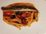 Masło włożyć do formy i rozpuścić pod przykryciem w podany sposób. Intensywnie rozmieszać mąkę i smak rybny, dolać do masła. Dodać koncentrat pomidorowy oraz śmietanę i rozmieszać. Zagotować sos w otwartym naczyniu. Doprawić solą i pieprzem. Włożyć zamrożony filet rybny do płaskiej formy w sufletowej. Rybę skropić sokiem cytrynowym. Pomidory pokroić w plasterki i obłożyć nimi rybę. Gorącym sosem polać rybę i gotować w otwartym naczyniu. Posypać ziołami prowansalskimi i podać. Sposób nastawania: Topienie masła: mikrofalówka 360 W, ok. 2 minuty. Zagotowanie sosu: mikrofalówka 600 W, ok. 5 minut. Gotowanie ryby: mikrofalówka 600 W, 30-35 minut. Wskazówka: smak rybny można również zastąpić 50-100 ml białego wina.