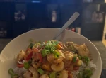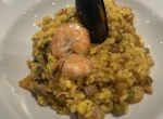 Na patelnię dodać ryż i dobrze wymieszać z przyprawami. Chwilę potrzymać na ogniu, po czym wrzucić krewetki, doprawić sola i pieprzem, zamieszać, zalać wrzątkiem i przykryć.