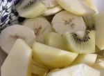 owoce myjemy, kroimy na mniejsze cząstki i mieszamy wszystkie razem.