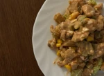 Na wstępie robimy sos czosnkowy. Siekamy drobniutko główkę czosnku albo wyciskamy jak kto lubi, aby uzyskać ostrzejszy smak kroję i miażdżę nożem cały czosnek. Do miseczki wlewam jogurt naturalny, do niego dodaje majonez, śmietanę oraz pokrojony czosnek, szczyptę soli i pieprzu według uznania oraz cukier w celu zgęstnienia sosu (wg tradycji kiedyś babcia tak robiła) i całość pod przykryciem wstawiamy do lodówki aby się schłodził. Następnie piersi z kurczaka myjemy i kroimy w kostkę, dodajemy posiekaną drobno cebulkę i smażymy na oleju kokosowym na średnim ogniu dodając w trakcie pieprz i sól. Smażymy do uzyskania złotego koloru i lekkiej kruchości mięsa. W miedzy czasie kroimy kapustę pekińska w średnio grube pasy a następnie kostkę. Kroimy paprykę w drobna kostkę. Kroimy szczypior. Odcedzamy kukurydzę z puszki. Gdy już mamy usmażone mięso odstawimy aby ostygło. Całość układam warstwami w misce: Najpierw mięso, na mięso paprykę, na paprykę kukurydzę,rozlewam sos czosnkowy, na sos większą połowę szczypioru, kapusta i na kapustę do dekoracji reszta szczypioru. Całość wstawiamy do lodówki z uwagi, że sałatka smakuje najlepiej schłodzona. Życzę smacznego!
