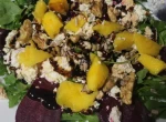 sałatka z pieczonymi burakami, kaszą bulgur oraz camembert