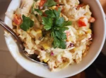 Pokrój selera naciowego na średniej wielkości kawałki, rzodkiewki w ósemki, a ogórki w kostkę. Wymieszaj z kukurydzą i cebulą.