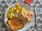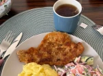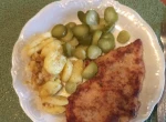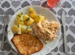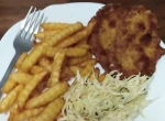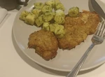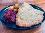 Przygotuj trzy płytkie miski. W jednej miski roztrzep jajka, a w pozostałych dwóch umieść mąkę pszeniczną i bułkę tartą. Wyjmij namoczone plastry schabu z mleka i osusz je delikatnie ręcznikiem papierowym. Oprósz każdy plaster schabu solą i pieprzem z obu stron. Każdy plaster schabu obtocz równomiernie w mące pszennej. Następnie zanurz plaster schabu w ubitym jajku. Na koniec obtocz plaster schabu w bułce tartej, delikatnie dociskając, aby bułka tarta dobrze się przyległa.