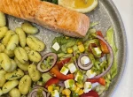 Na talerzu serwuj porcję łososia i solidną ilość kolorowej salsy.