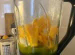 Wszystkie składniki zmiksuj. Na koniec dolewaj sok z pomarańczy, aż smoothie zyska odpowiednią konsystencję.