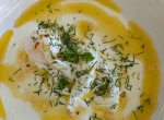 Pasternak z mlekem kokosowym s miodowo pikantnym sosem i z jajkem w koszulce z wasolkom i pomidorkami suszonymi