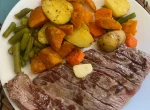 Stek z pieczonymi ziemniakami i zielonymi szparagami Rafała Maślaka