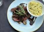 Stek z polędwicy wołowej z chipsem parmezanowym i zielonym mchem