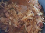 Zanim zabierzesz się do gotowania kapusty, zalej suszone grzyby wrzącą wodą, a następnie odstaw je na bok. Przepłucz kapustę pod zimną wodą i odciśnij z niej nadmiar soku, a następnie poszatkuj ją drobno. Włóż kapustę do garnka, zalej wrzątkiem i dodaj ziele angielskie oraz liście laurowe. Wrzuć też suszone śliwki. Duś kapustę na niewielkim ogniu dotąd, aż stanie się miękka.