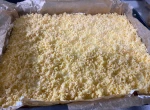 Kiedy ciasto się piecze, przygotuj kruszonkę. Wszystkie składniki wrzuć do miski i ucieraj łyżką, a następnie dłonią aż do uzyskania dużej ilości niewielkich grudek.