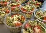 Minutę przed końcem gotowania makaronu do garnka wrzuć pokrojone na połówki pomidorki koktajlowe. Dzięki temu zabiegowi pomidory będą ciepłe i lekko zmiękną.