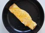 Gdy omlet będzie ścięty od spodu, a wierzch jeszcze płynny zacznij powoli zwijać go w rulon.