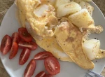 Omlet przełóż na talerz i posyp grubo mielonym pieprzem. Podawaj z posiekanym szczypiorkiem i pomidorkami.