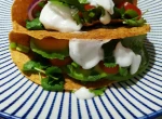 tacos warzywne z sałatką zieloną i pastą z soczewicy