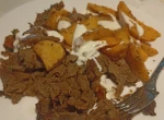 Większą patelnię rozgrzej, dodaj oliwy i drobno pokrojoną cebulę, smaż do zeszklenia. Dodaj zamarynowane mięso, obsmażaj je z każdej strony na złotawy kolor. Mięso przełóż do wyższego garnka, dodaj ciecierzycę, pomidory oraz ok 200 ml wody, dodaj także soli. Całość duś ok 3 godzin na minimalnych ogniu, co jakiś czas mieszając i jeśli będzie potrzeba dodając wody. Możesz wykorzystać również piekarnik z funkcją grilla z termoobiegiem.