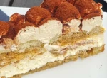 Warstwowanie ciasta tiramisu: na dnie wybranej formy lub szklanych pucharków układaj warstwę nasączonych biszkoptów. Na biszkopty wykładaj równomierną warstwę kremu mascarpone. Czynność powtórz, tworząc kolejne warstwy, aż do wyczerpania składników, kończąc warstwą kremu.