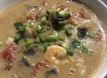 Do bulionu dodaj mleko kokosowe, sos rybny i oliwę. Krewetki umyj i obierz. Bulion doprowadź ponownie do wrzenia i dodaj pokrojone drobno grzyby, paprykę, sok z limonki i cukier, a także krewetki. Gotuj 3-4 minuty, tak by krewetki się nie przegotowały, a grzyby i warzywa pozostały chrupiące. Dodaj pokrojone na pół pomidorki koktajlowe.