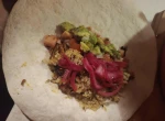 Wszystko wymieszać z sałatą i wystudzonym kurczakiem doprawić przyprawami nakładać na podgrzane placki i podawać z sosem