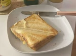 Kromki chleba tostowego zrumienić w tosterze i posmarować masłem. Na całą powierzchnię tostów nałożyć plasterki szynki. Zamknięte naczynie z plasterkami jabłka ustawić na ruszcie na wysokości 1.