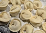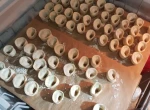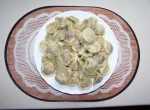 Każdy wycięty kawałek rozciągnij delikatnie w palcach, na środek ułóż po łyżeczce farszu i złóż na pół dokładnie zlepiając brzegi. Następnie złącz ze sobą oba końce.