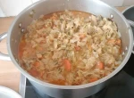 Do garnka dodaj białą kapustę, śliwki i grzyby (razem z wodą, w której się moczyły).