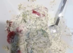 Następnie przygotuj sos. W małej miseczce połącz 3 łyżki jogurtu naturalnego z 1 łyżką majonezu. Dodaj szczyptę soli oraz świeżo mielony pieprz, całość dokładnie wymiesza, aż uzyskasz jednolitą, kremową konsystencję. Spróbuj sosu i w razie potrzeby dopraw dodatkowo solą i pieprzem według własnego smaku.