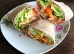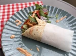 Tortille posmaruj pesto, ułóż liście sałaty rzymskiej, plastry pomidora, mozzarellę oraz kawałki kurczaka. Zwiń i podawaj domowe tortille z kurczakiem na zimno lub na ciepło.