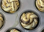 Koniec ciasta podłożyć pod spód bułeczki. Bułeczki umieścić na blaszce wyłożonej papierem do pieczenia, pozostawić w ciepłym miejscu aż się napuszą. Piekarnik nagrzać do 175 stopni Celsjusza. Bułeczki piec ok. 15 minut, wyjąć, lekko przestudzić.