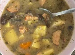 Domowa zalewajka może być podawana z dodatkiem grzybów – te należy wcześniej umyć i wymoczyć przez około godzinę, a następnie gotować pokrojone w drobną kostkę z ziemniakami.