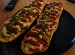 Cebulę i kiełbasę pokroić w drobną kostkę i podsmażyć na niewielkiej ilości oleju. Do podsmażonej kiełbasy z cebulą dodać pokrojoną w kostkę paprykę przez moment przesmażyć. Do miski wybić jajka, roztrzepać, dodać pieprz i sól. Jajka wylać na smażącą się kiełbasę z dodatkami, smażyć do uzyskania konsystencji średniowysmażonej jajecznicy. Bułki przekroić na pół, wydrążyć miąższ bułki (środek); Połowę bułkowego miąższu dodać do jajecznicy, wymieszać. Bułeczki napełnić jajecznicą, przykryć plastrem żółtego sera (ser można posypać słodką czerwoną papryką). Zapiekać w piekarniku do całkowitego rozpuszczenia się sera.