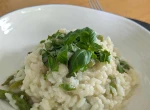 Na patelnie wkładamy łyżkę masła dodajemy cebulę i czosnek. Zeszklić chwilę następnie dodać ryż całość smażyć dopóki ryż nie zrobi się przezroczysty. Podlać winem. dusić pod przykryciem 15 minut. W między czasie dodać resztę masła, bób i groszek. Pamiętajmy aby co jakiś czas mieszać całość aby uniknąć przypalenia. Podawać w głębokim talerzu można posypać parmezanem lub koperkiem do smaku. Smacznego!