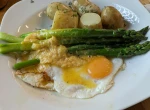 Zielone szparagi z jajkiem, ziemniakami i batatami
