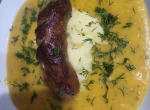 - W wersji z boczkiem lub białą kiełbasą dla miłośników mięsnych dodatków. Boczek można usmażyć na chrupko i pokruszyć na wierzch zupy, a kiełbasę pokroić w plasterki.