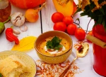 Do wyższego lekko rozgrzanego na płycie grzewczej garnka przełóż upieczoną dynię, zalej mlekiem kokosowym, dodaj posiekane łodygi kolendry oraz ok. 100 ml wody. Gotuj do zagotowania. Przy pomocy blendera ErgoMaster zmiksuj całość na jednolitą masę. Jeśli konsystencja będzie zbyt gęsta dolej więcej wody.