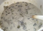 Filety śledziowe opłucz i pokrój w kostkę. Równolegle ugotuj ziemniaki w mundurkach. Do zimnego wywaru dodaj śledzie i śmietanę - dokładnie wymieszaj. Ugotowane ziemniaki obierz.
