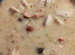 Ziemniaki obierz i pokrój w kostkę, dodaj do wywaru, wraz z wcześniej podsmażoną kiełbasą, boczkiem i cebulką. Dodaj również rozgnięcione dłonią ząbki czosnku.